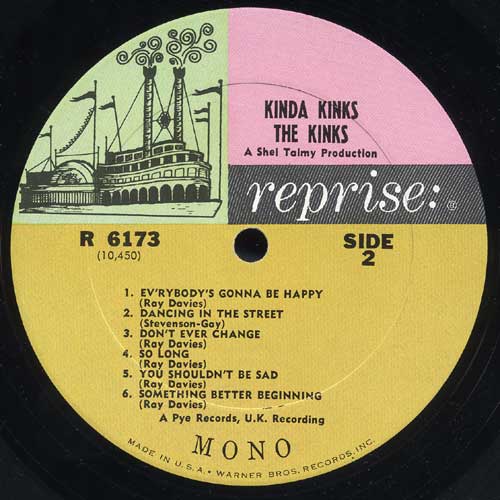 | Kinda Kinks | 11 Aug, 1965 | USA | Reprise R 6173 | 12" vinyl LP (album), 33 1/3 RPM |