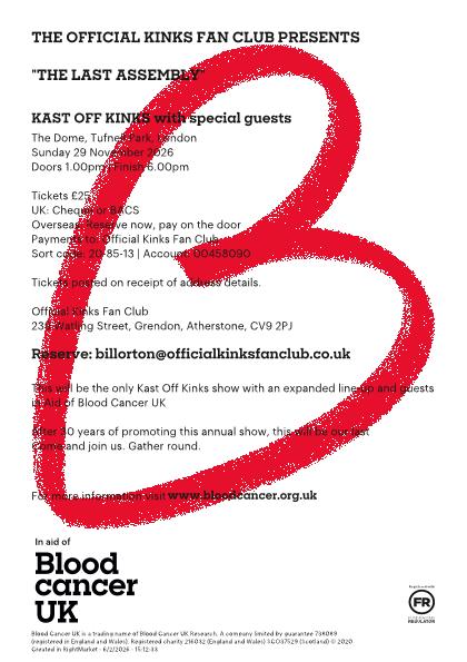 | 4:40 pm - | The Blood Cancer charity has made a flyer for the Official Kinks Fan Club event in November:![]() |