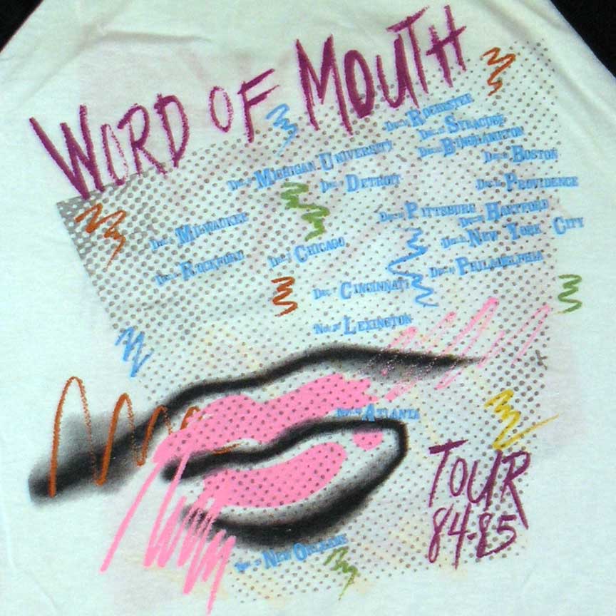 Description: Shirt from the first leg of the US Word Of Mouth tour. I bought this at the Kinks concert at the War Memorial in Syracuse, NY on December 12th, 1984.